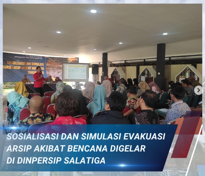 Dinas Perpustakaan dan Kearsipan (Dinpersip) Kota Salatiga menyelenggarakan kegiatan Sosialisasi dan Simulasi Evakuasi Arsip Akibat Bencana, bertempat di Aula Taman Literasi Dinpersip, Rabu 12/06/2025. Kegiatan ini diikuti oleh para pengelola arsip dari berbagai perangkat daerah se-Kota Salatiga.